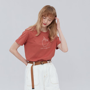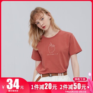简约草莓印花显白砖血色正肩t恤女短袖2021年6月16日
