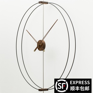 家用艺术静音创意轻奢西班牙极简典范间客堂实木超大指针挂钟表天猫商城