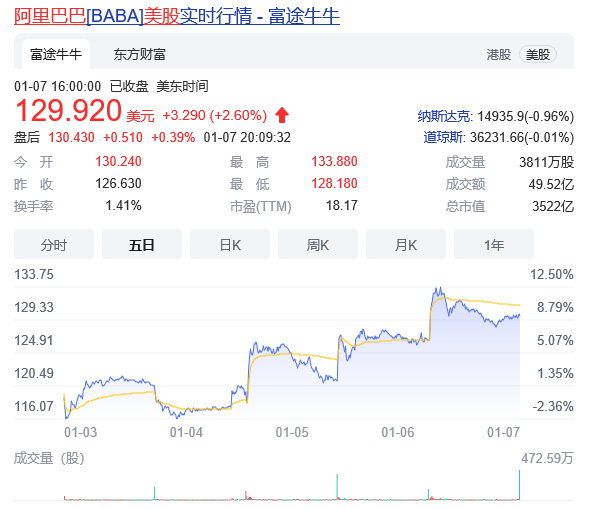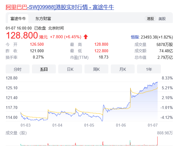 1月6日的合并消息发布之后,阿里港股美股都出现了上涨。阿里巴巴港股甚至涨到了6.45%。