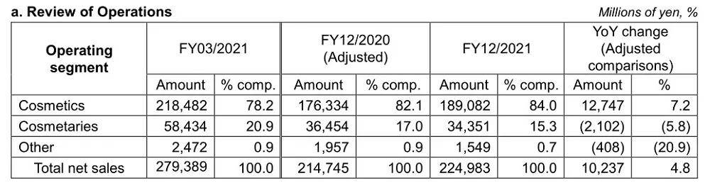 财报显示,自2021年4月1日至2021年12月31日期间,日本高丝集团净销售额124.34亿元,同比增长4.8%;营业利润为10.42亿元,同比增长14.1%;由于成本控制,受重组费用和税收调整影响,归属于母公司股东的净利润为7.37亿元,同比减少4.4%。
