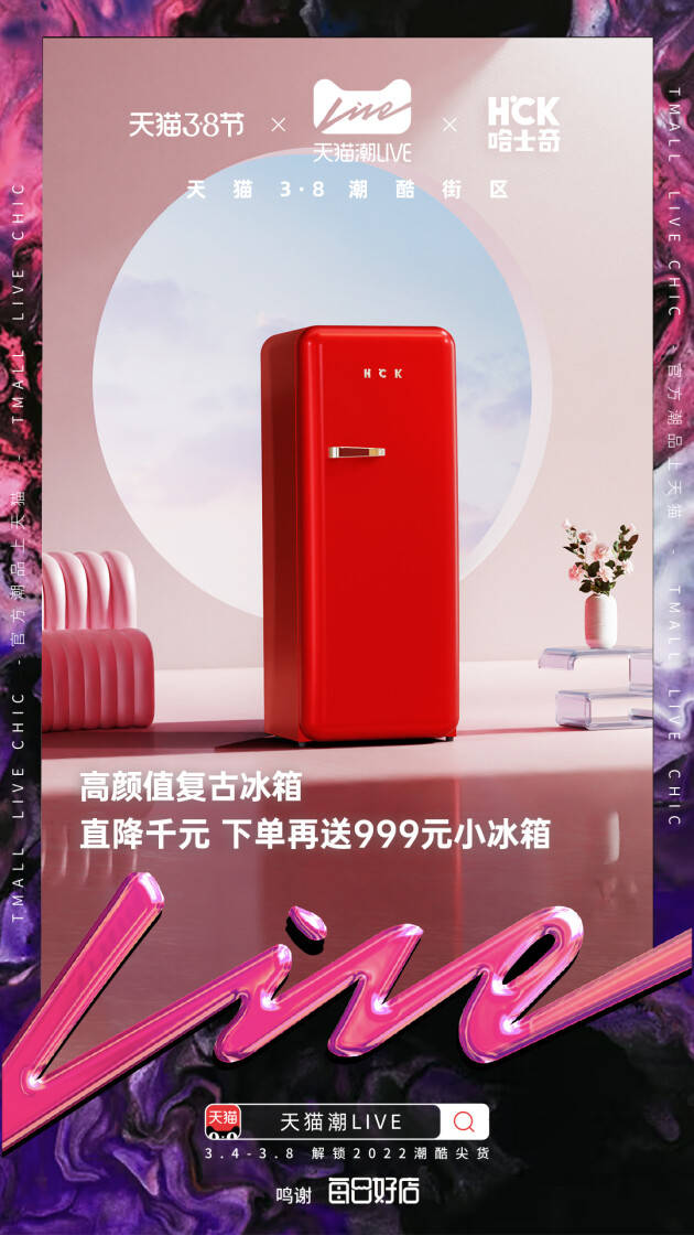 HCK哈士奇作为潮流街区唯一的家电品牌,见证了潮流女性对生活品质的更高要求,吸引了无数潮流人士的关注。同时作为2021年双11天猫复古冰箱、冰吧销售排名第一的品牌,让我们共同期待HCK今年38女王节的表现!