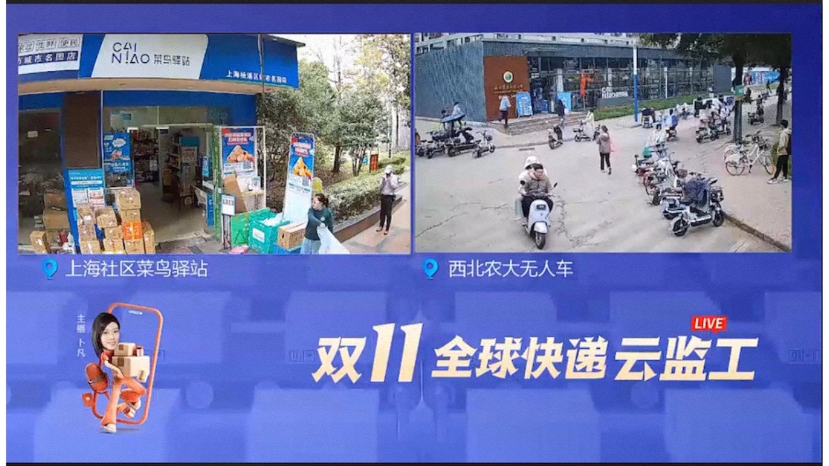 在快递转运中心传输带上,时而有大批包裹涌入,并很快有序缓缓流动;智慧仓中,菜鸟的众多AGV搬运机器人忙前忙后移动“脚步”,与堆垛机叉车相互配合沉着应对物流高峰;大学校园里,菜鸟无人车“小蛮驴”穿越人群准确无误地将快递送到学生宿舍楼下……从超11天的慢直播里,网友们见证了菜鸟的数智化物流新体验。