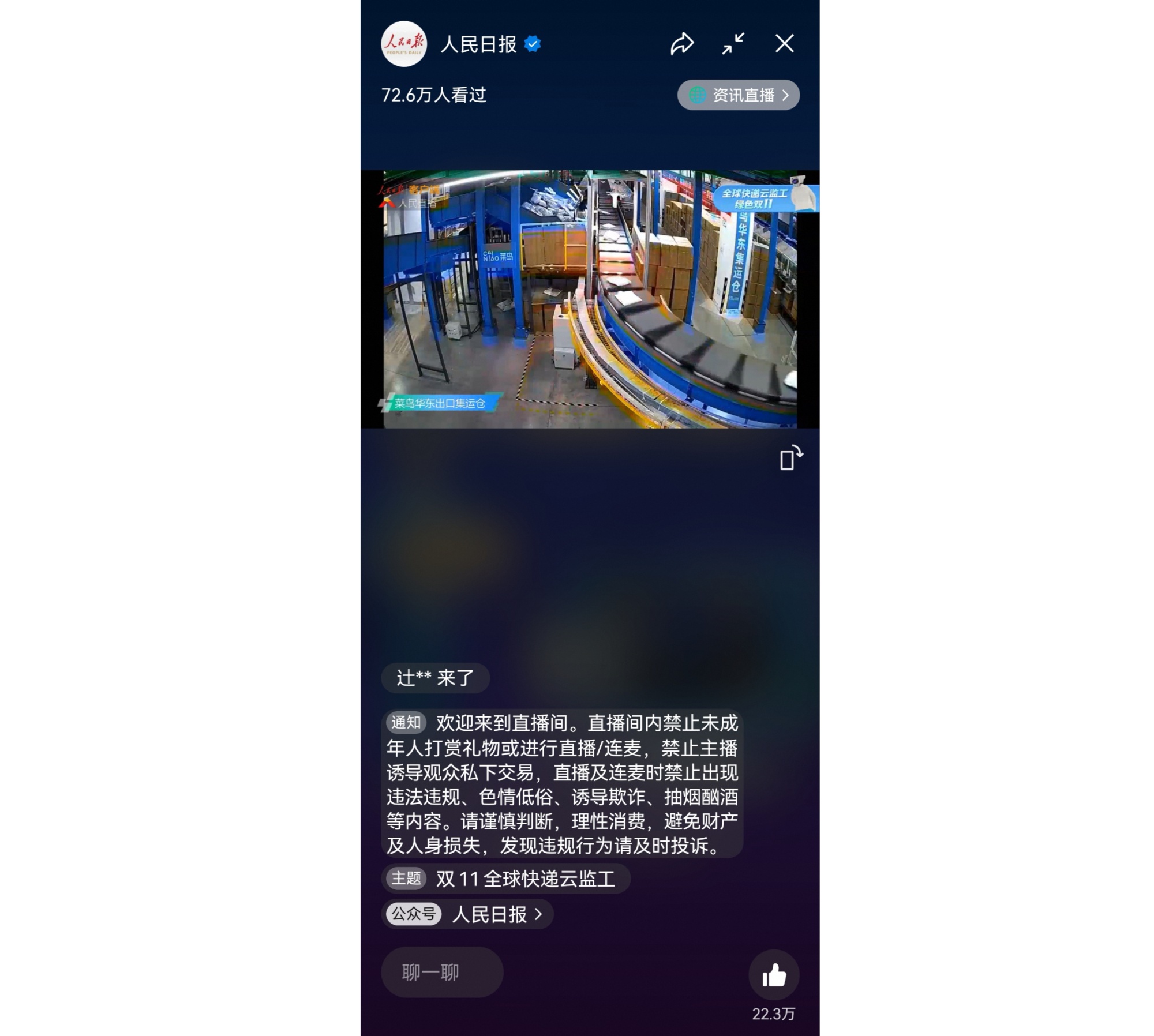 “快递小哥治好了我的精神内耗。”11月12日零点,伴随着第14届天猫双11收官,一场超11天共268小时的全球快递“云监工”直播也正式落幕。从10月31日晚八点开播以来,这场“治愈系直播”已被人民日报等全国70多家媒体转播,仅视频号和抖音号就吸引了超3000万人次围观。