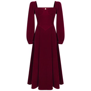 天猫商城赤色丝绒坠感连衣裙秋冬女新款