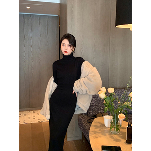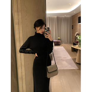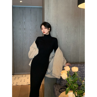 剩饭cellchok高领收腰针织毛衣连衣裙女春季 气质内搭直筒长裙子天猫商城