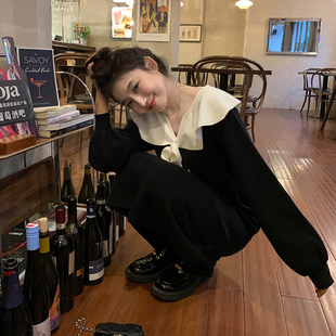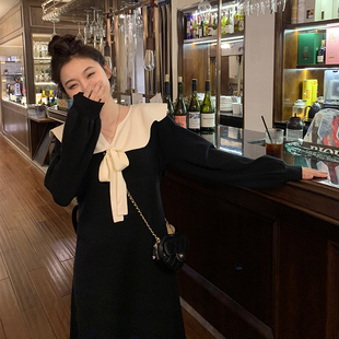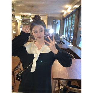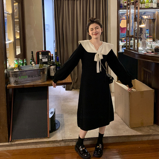 胖mm撞色领针织连衣裙女冬季-天猫商城