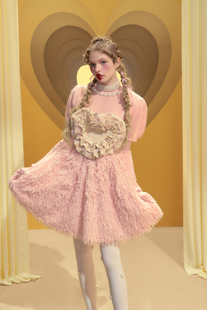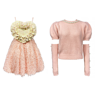 粉色粗花呢层叠爱心珍珠装?天猫商城