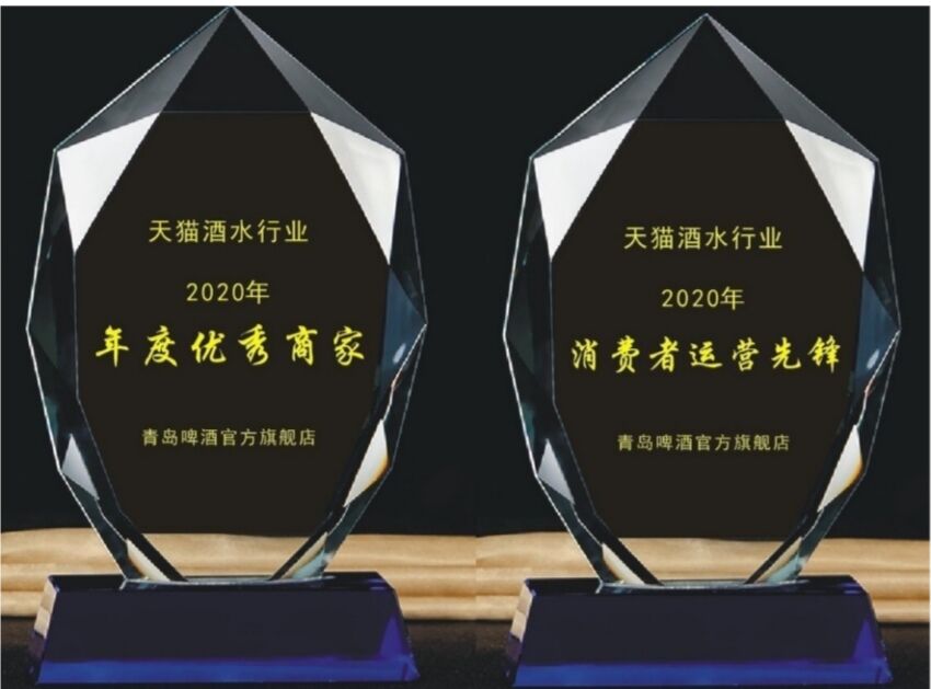 2020年5月14日,“天猫酒水商家大会”线上举行直播,青岛啤酒天猫官方旗舰店获得“年度优秀商家”和“消费者运营先锋”大奖,成为同时揽获这两项大奖的唯一啤酒品牌,不断升级优化消费者购物体验。这是继“2018年度杰出贡献集团“大奖、“2019年度酒类舰长奖”、“2019年度最受欢迎品牌”之后,青岛啤酒再次获得天猫啤酒类目大奖。