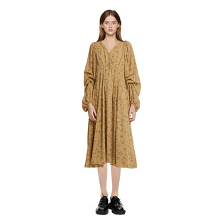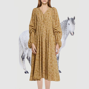 天猫去有风 茶歇程序 长裙子 复古v领碎花连衣裙女春季 场地刘亦菲同款