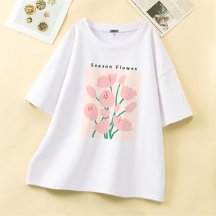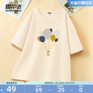 天猫密斯宽松显瘦策画感纯棉幼多T恤oversize正肩 新款 雪中飞2023夏日