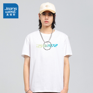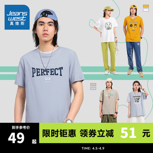 男女款 KCP真维斯情侣装 T恤衣服 新款 圆领短袖 兴味印花上衣2023夏令?天猫