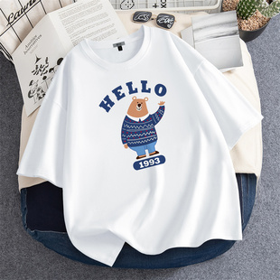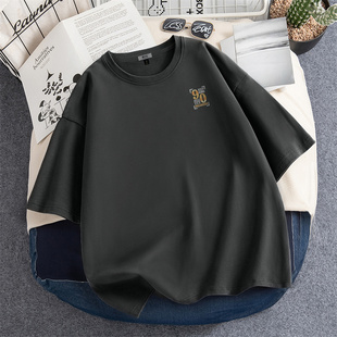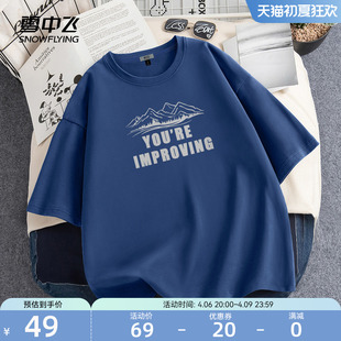 天猫纯棉重磅圆领insT恤 新款 男潮日系休闲宽松简约美式 雪中飞2023夏令