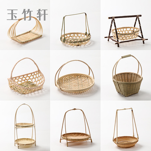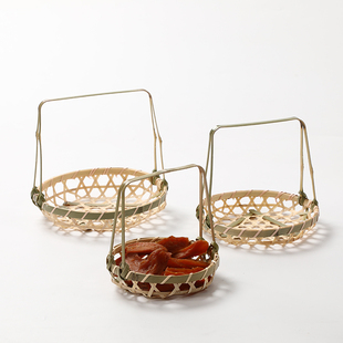 成亲竹编篮 家用茶点盘生果篮子糕点托盘创意幼竹篮 手工竹编提篮2023年4月18日天猫