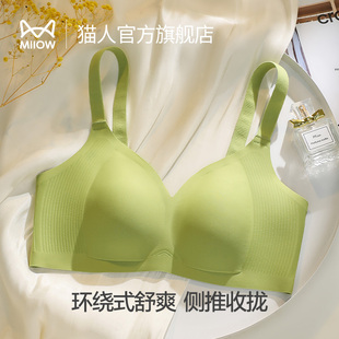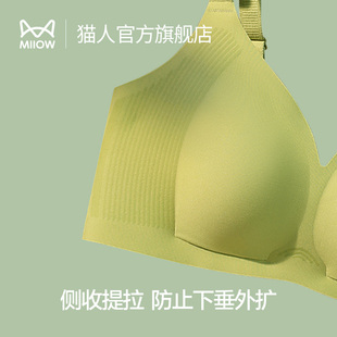 收副乳防下垂文胸 薄款 猫人大胸显幼内衣女无痕软支持聚拢胸罩夏令天猫